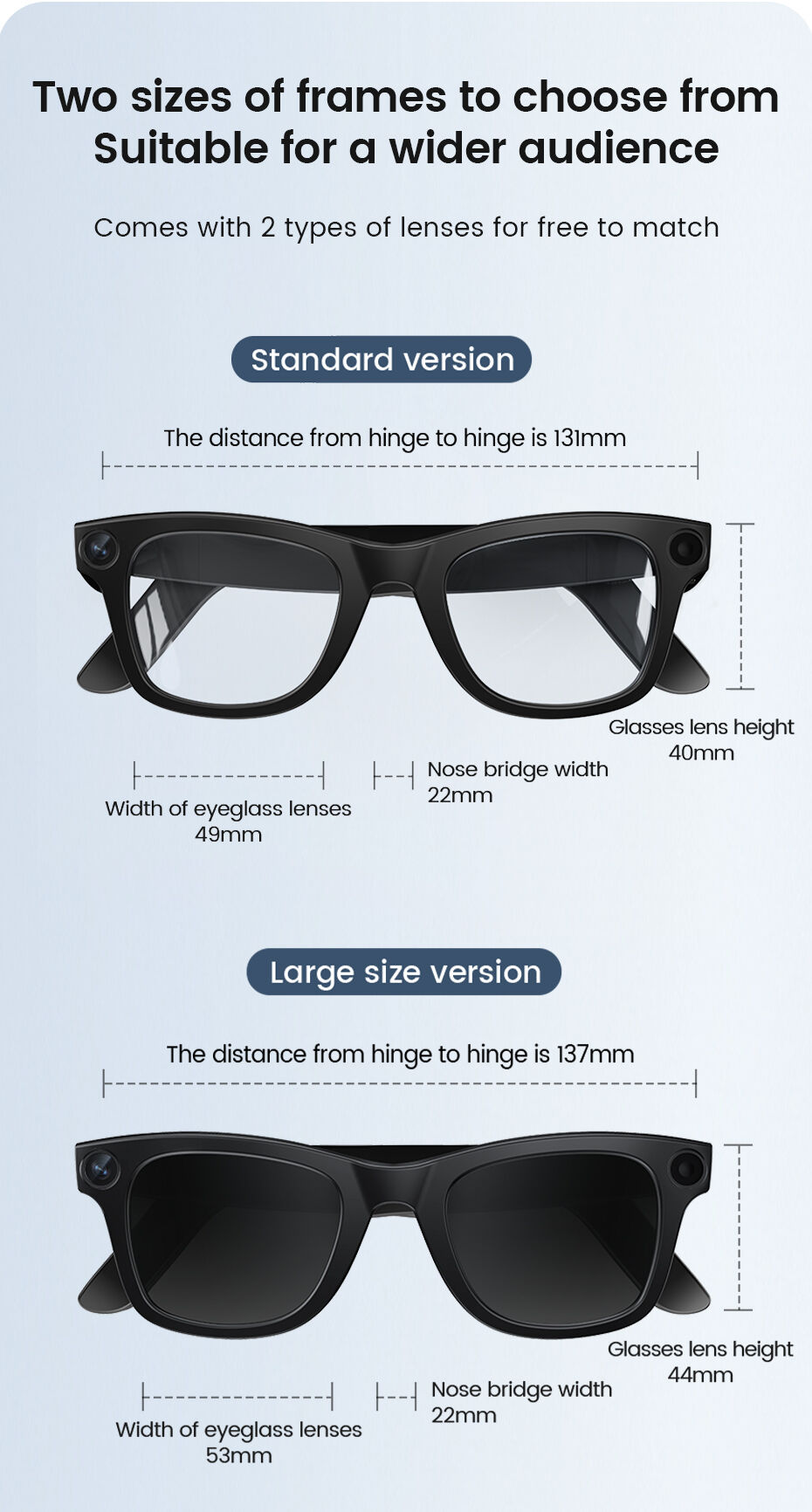 AI Smart Glasses - 1080P HD Recording Glasses with 800W Pixel Camera, 32GB Storage, 120H Standby, Anti-Shake & Magnetic Charging
